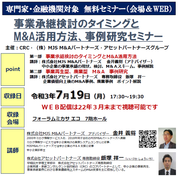 | 主催 | CRC・(株)MJS M&Aパートナーズ・アセットパートナーズグループ |